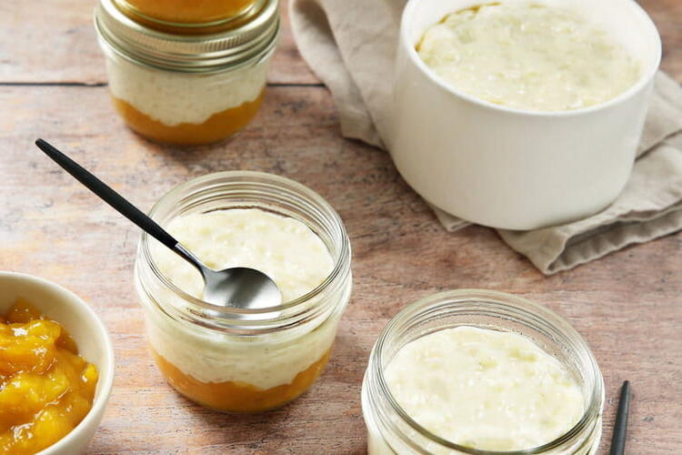 Remove from heat and roughly mash with a fork. Pour mango compote into the bottom of a glass jar, then fill with rice pudding.