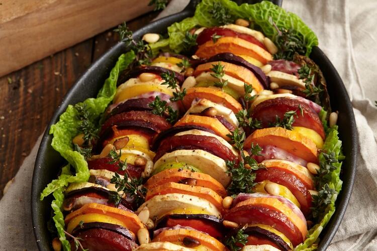 The trick with Goat Cheese: vary the flavors by adding bicolor carrots or butternut squash to the gratin.