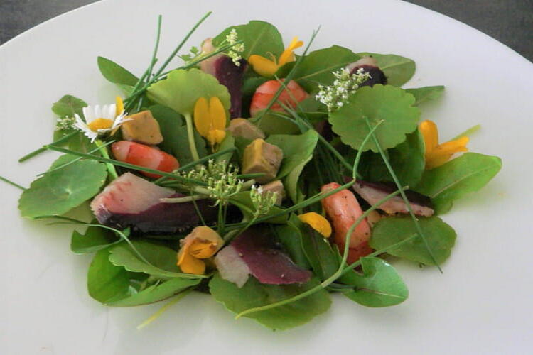 Blend the flesh. Then add the mint, olive oil, and balsamic vinegar.