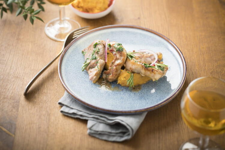 Indulge in this delicious recipe for lamb chops accompanied by sweet potato puree.