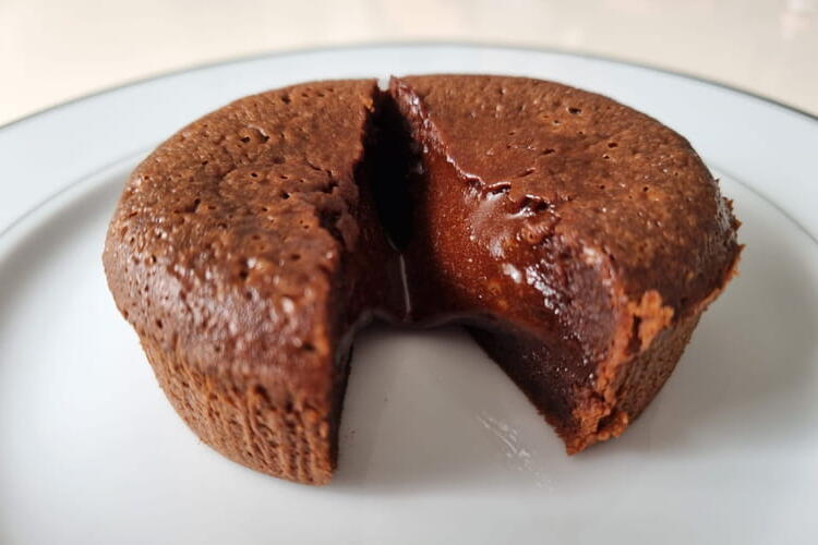 Fill the molds halfway with batter, then place a cookie and a piece of dark chocolate in the center. Distribute the remaining batter. Bake the fondants in the oven for 15 minutes.