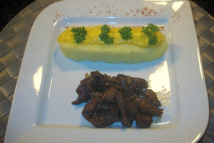 To finish, sauté the pieces of heart in a pan with the garlic cube, onion, salt, pepper, and curry. After 10 minutes, keep them warm and deglaze with 2 tablespoons of Worcestershire sauce.