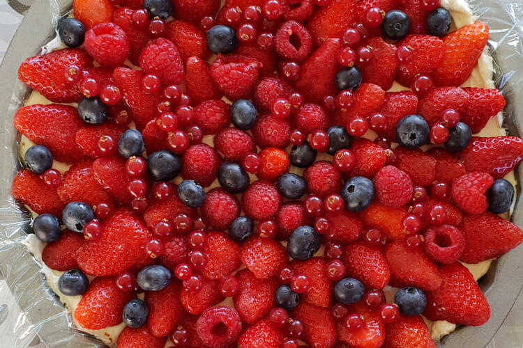Wash your red fruits and then arrange them on the mascarpone cream.