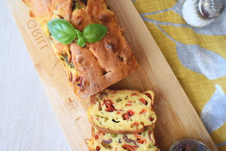 Finally, transfer to a loaf pan lined with parchment paper. Bake for about 40 minutes. Remove, unmold onto a rack, and let cool.