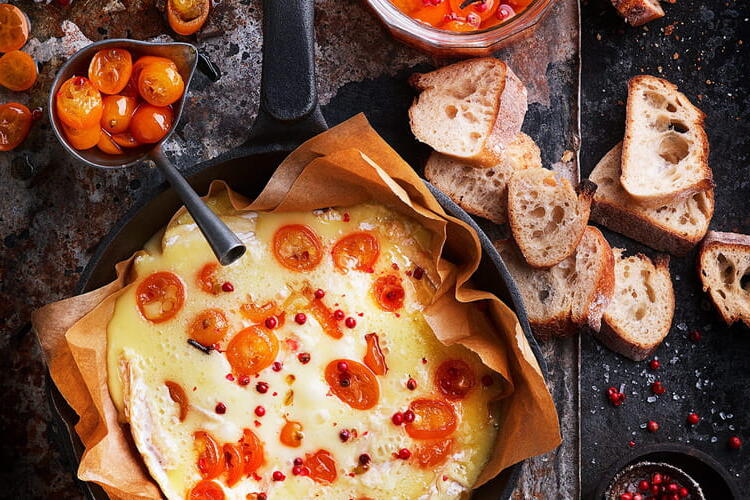 Bring on the colors and indulgence with this recipe for roasted cheese with kumquats. Recipe and styling: Annelyse Chardon. Photo credit: Julie Mechali.