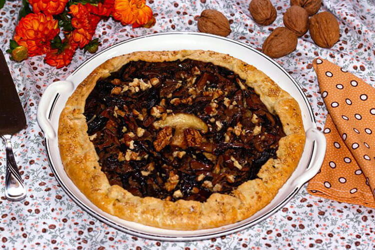 A rustic forest tart to enjoy the good products that autumn offers us, featuring mushrooms and a few nuts for added crunch.