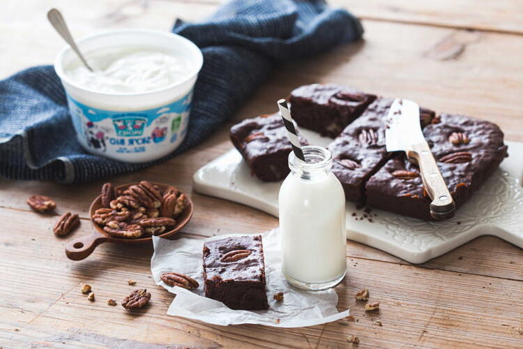 Add the chocolate and butter mixture to the mixing bowl, then the flour.