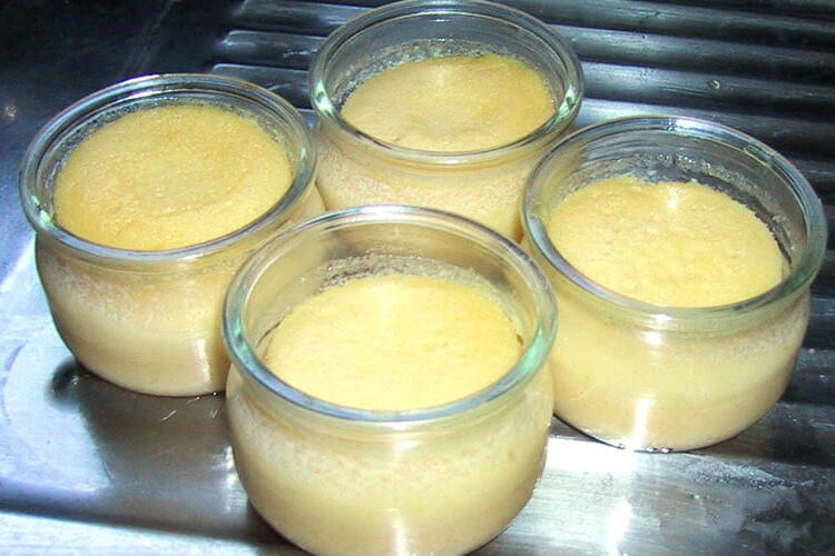 Divide among 6 heatproof cups. Place them on the baking sheet and pour boiling water until halfway up the cups.