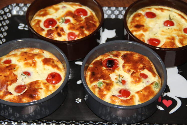 Recipe for Small Pea Clafoutis with Cream Cheese and Ham