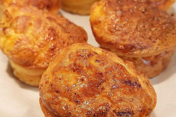 Cut the squash into slices, peel it with a knife, and chop it into pieces. Grate the pieces using a medium grater and keep only 500 g of the flesh for this recipe. Peel and crush the garlic. Beat the eggs in a mixing bowl, add the cheese, garlic, flour mixed with baking powder, and mix everything together. Add the grated squash and mix again. Season with salt and pepper. Oil the molds and then fill them up to 3 millimeters from the edge. Grind five peppercorns on top. Bake for 35 minutes in a preheated oven at 180 °C. Allow to cool slightly before unmolding.