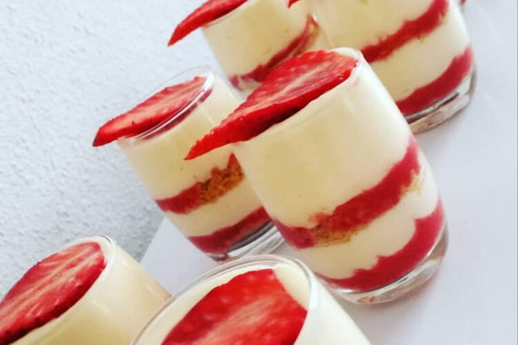 To finish, assemble in the glasses: Take a pinch of shortbread cookies. Add strawberry coulis. Add mascarpone cream. Repeat until exhausted and don't forget to add the finishing touch decoration (such as strawberries and any leftover cookies).