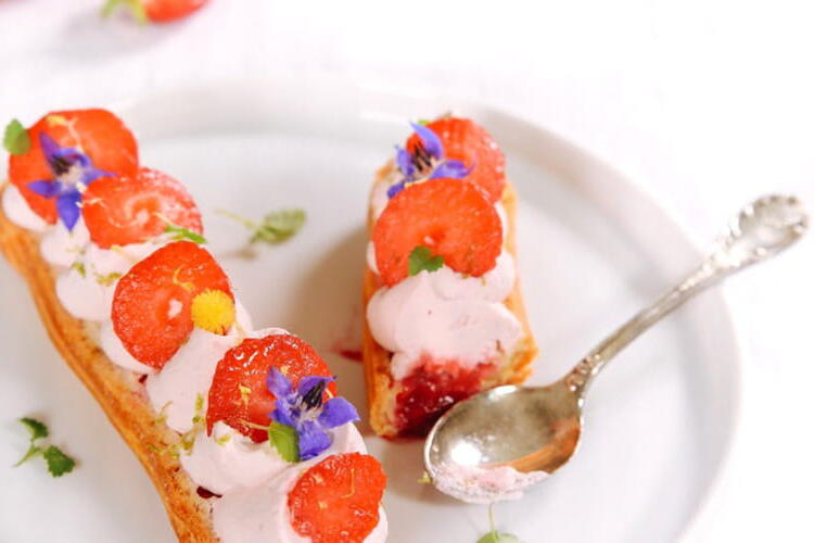 A delicious recipe for summer strawberry éclairs. AUTHOR/CREDITS: