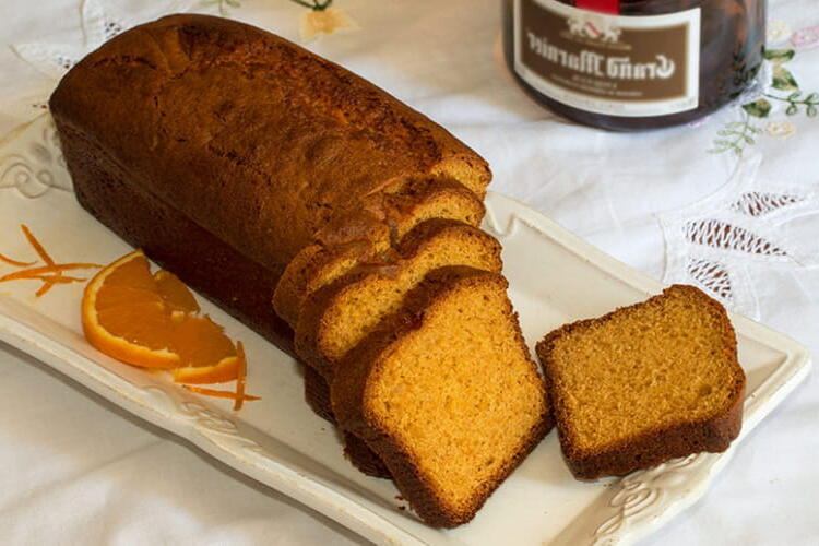 Add the orange juice and the liqueur. Bring to a boil for 30 seconds. Remove from heat and let cool. Grease or line a loaf pan with parchment paper.