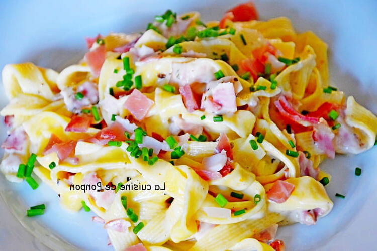 Recipe for Tagliatelle with cured ham, mozzarella sauce.