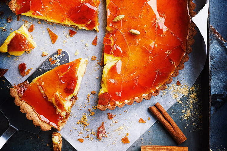 Assembly and finishing: Heat all the ingredients for the glaze. Adjust the shortbread on the apples. To unmold the tart, turn it over and heat it directly over the flame, then unmold onto a plate. Cover with the glaze. Serve with gourmet cream.