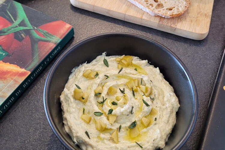 To finish, melt the coconut oil and add the turmeric. Cover the terrine with this mixture. Place it in the refrigerator. Wait a few hours before serving. It can be spread on toasted bread, for example, especially with fig jam or a chutney...