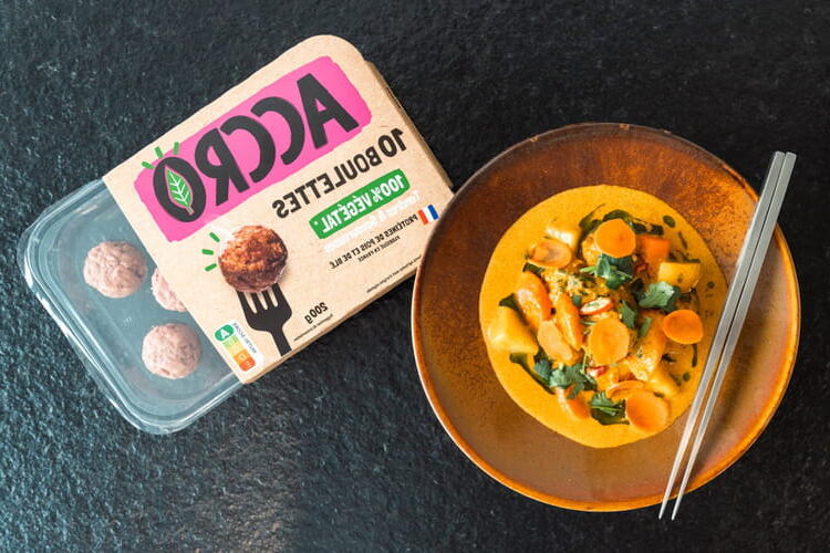 Discover a recipe for vegetable meatballs with Massaman curry, perfect for a tasty meal. This recipe, made with vegetable meatballs, Massaman curry, coconut milk, potato, carrot, red chili, and coriander, is easy to prepare and will take you on a journey while staying at home.