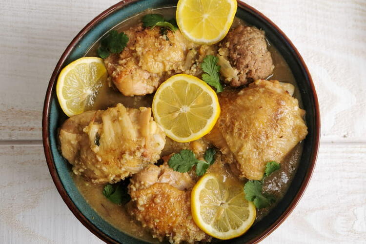 To finish, mix well and form into meatballs. Add them to the pot and let simmer until the meat is cooked. Just before serving, add parsley and lemon slices.