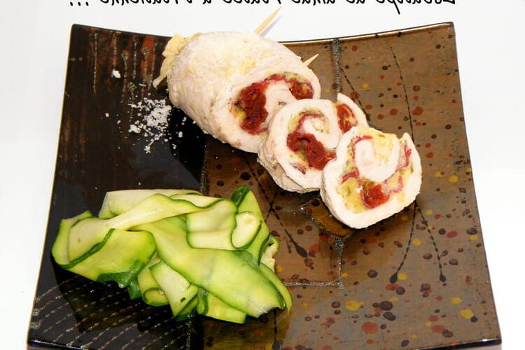 An original way to cook turkey! Basil, parmesan, mozzarella, cured meat (to make it even more Italian, I recommend brasaola but I didn't have any) cooked in a steamer for added lightness. For the side, it's just slices of zucchini also cooked in steam.