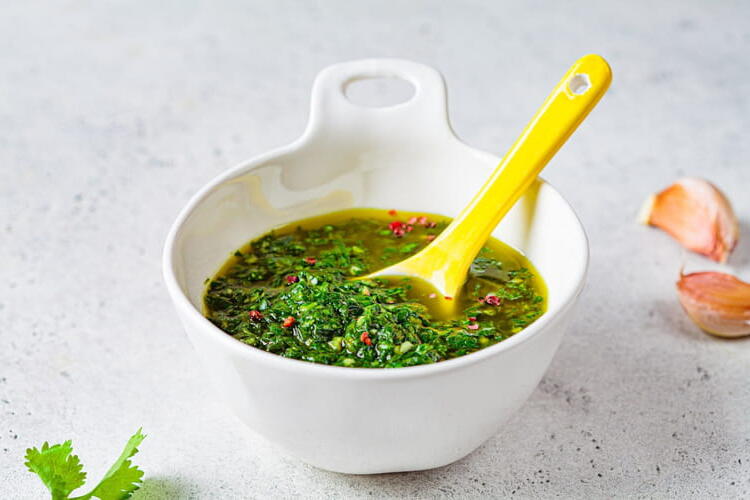 Discover the traditional recipe for chimichurri! This condiment originating from Argentina, easy to make with parsley, garlic, vinegar, olive oil... is used as a marinade or as a dipping sauce.