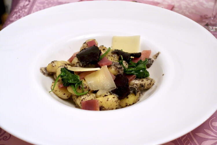 Infuse the truffle in the cream in advance (between 1 to 4 hours). Gently heat the cream with the parmesan. Sauté the spinach leaves briefly in a bit of olive oil. Immerse the gnocchi in salted boiling water until they float to the surface. Add them to the cream.