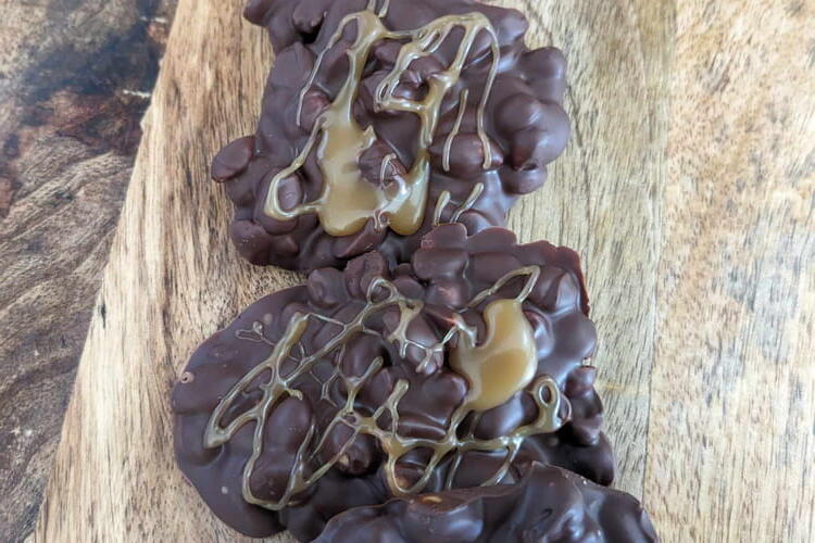 For the ganache: Heat your hazelnut cream, then pour it over the chocolate. Wait 1 minute before mixing, allowing the chocolate to melt, then mix until you achieve a ganache.