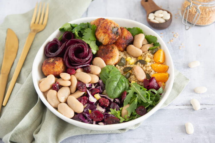 A recipe for a buddha bowl. You can customize it according to your desires: grated carrots, avocado, cooked cabbage, cooked broccoli, etc.