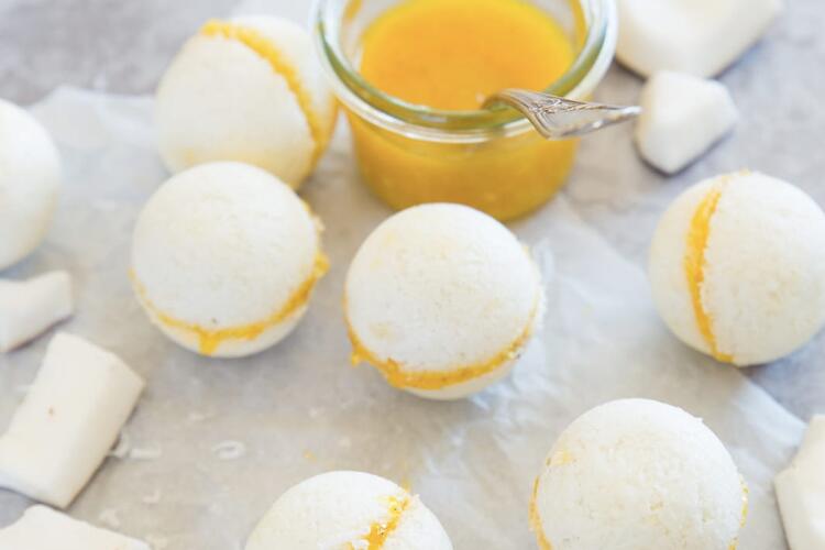 Unmold and then let cool. When the spheres are well chilled, stick them together in pairs with a bit of mango jam.