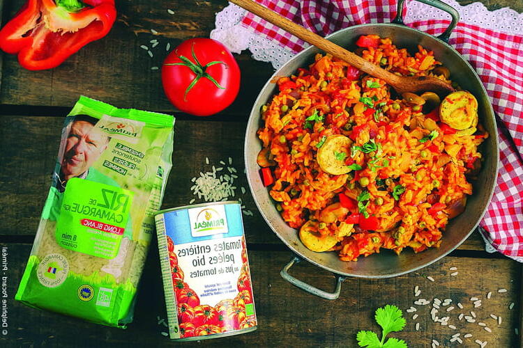 This veggie paella recipe with Camargue rice is provided by a brand.