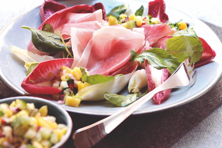 For the beautiful days, treat yourself to this delicious endive salad with Parma ham and mango salsa. A sweet-salty mix that delights the taste buds!