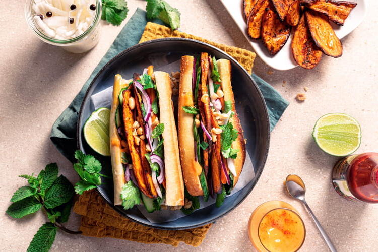 Discover the delicious and original sweet potato veggie banh mi recipe. These Vietnamese rolls will impress your guests at a gourmet vegetarian dinner.