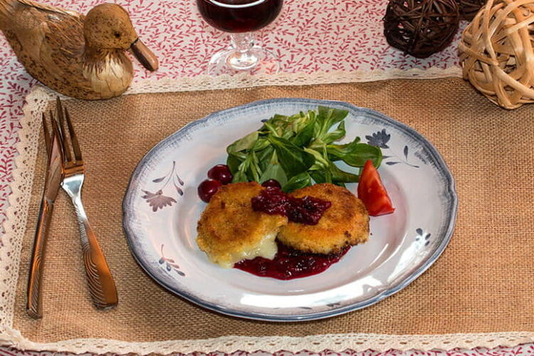 These breaded and melting cheeses make a delicious gourmet appetizer. The cranberry compote is a pure delight as a side dish.