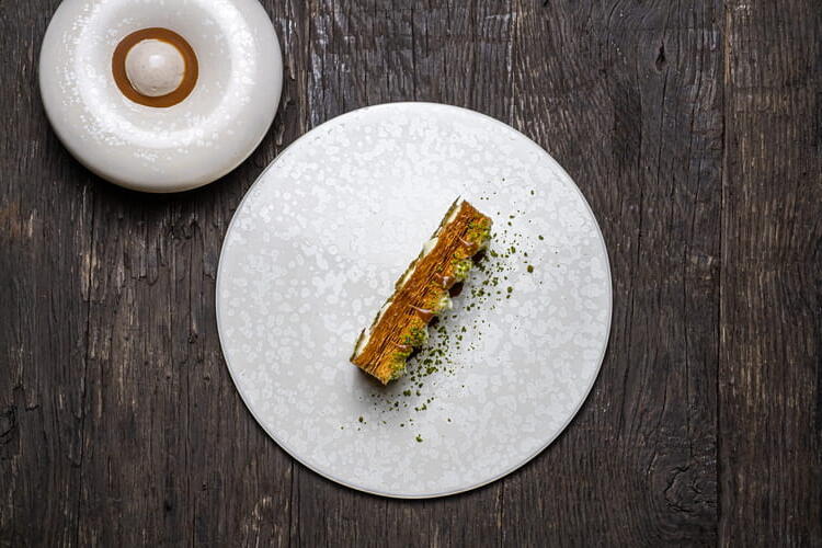 For a chef-level dessert, try making a Millefeuille with light Madagascar vanilla cream, pistachio Florentine, and vanilla ice cream.