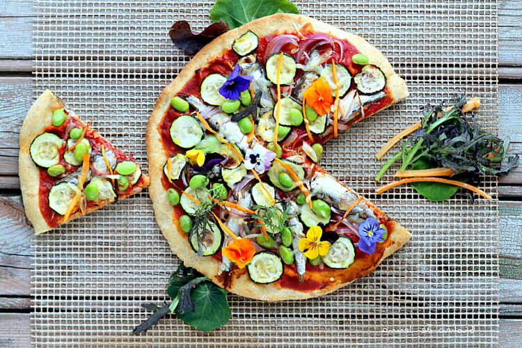 This summer pie combines the freshness of tomatoes, the creaminess of mozzarella, and the aroma of pesto for a delicious and colorful result. Easy to make, it becomes a complete and balanced meal with a green salad on the side. Perfect for a light dinner outdoors or a picnic with friends, this recipe highlights Mediterranean ingredients that will please the taste buds.