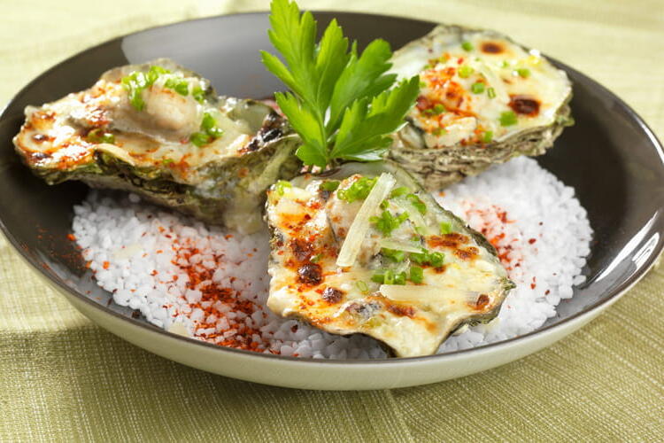 Recipe for oysters warmed with AOP Ossau-Iraty foam.