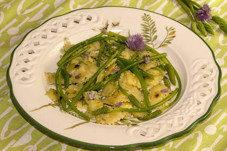 A sauté of asparagus with ravioli, a delicious and very simple hot starter to prepare. I have had the opportunity to prepare this wild asparagus several times, on white pizza, with fettuccine, in a salad with sun-dried tomatoes, with scrambled eggs, complemented by a delicious sauce. The season for this wild asparagus that grows on the edge of the woods is very short, so one must take advantage of it.