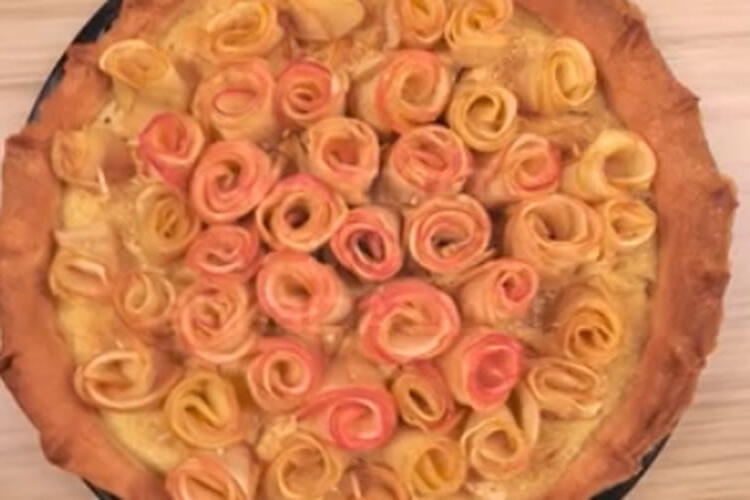 Arrangement of apples Arrange the rolled apple slices in a rose shape.