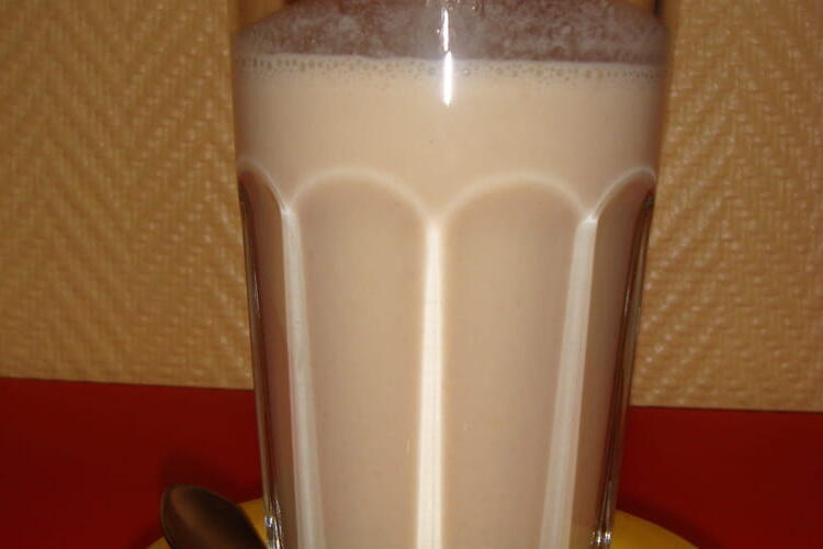 In a blender, place the banana, peanut butter, and milk. Blend until you achieve a smooth mixture.