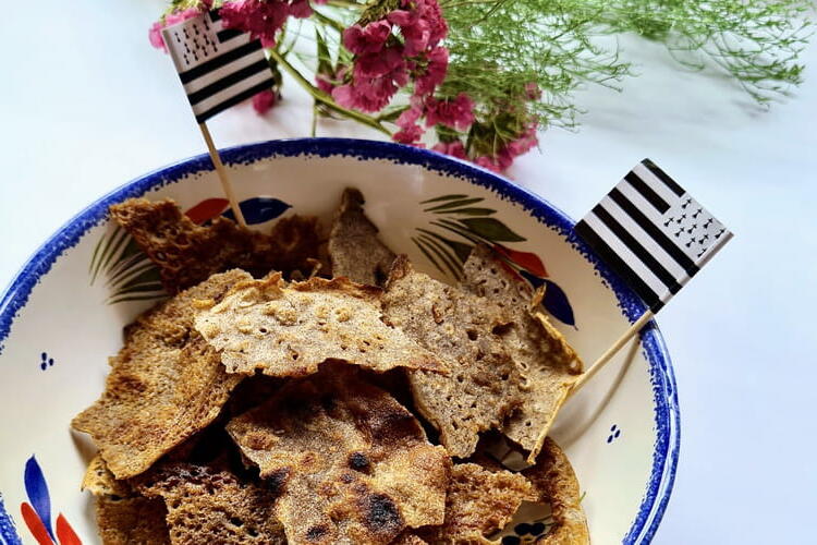 What to do with leftover buckwheat crepes? Make small, crispy, and rich chips for your next appetizer. Preferably using leftover homemade crepes. If not, buy them at a market stall. At the very least, you can find them in the refrigerated section of your supermarket.