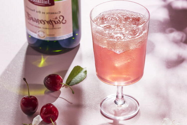 To finish, gently fill the glass with sparkling wine.