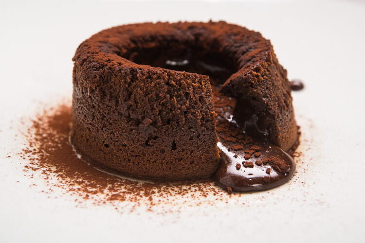 To finish, plating: The dessert should be soft and liquid in the middle and is best enjoyed hot. Pour a swirl of custard with orange blossom around the dessert, or into a small container. Enjoy!