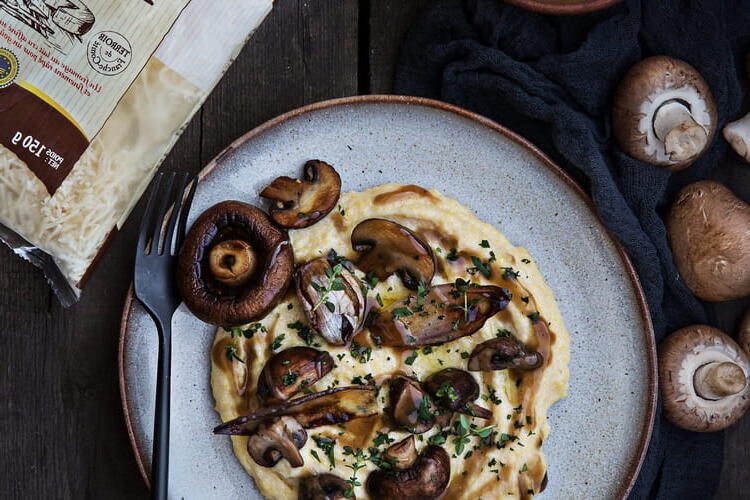 Creamy Polenta with Grated Gruyère Cheese and Sautéed Mushrooms