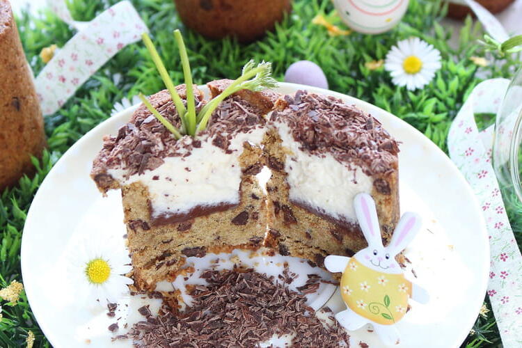 To finish, when the cookies have cooled completely, fill a piping bag with a round tip with white chocolate-almond mousse. Add 1 teaspoon of spread on each cookie, followed by the mousse. Sprinkle with dark chocolate shavings, decorate with small eggs, and refrigerate for 1 hour.
