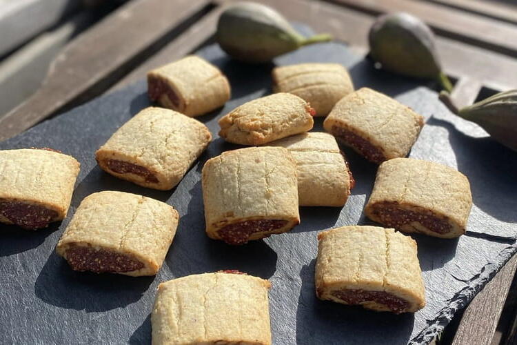 Roll out the dough on a floured surface. Place the fig paste in the center of each strip, then seal the dough well to ensure the fig paste does not leak during baking.