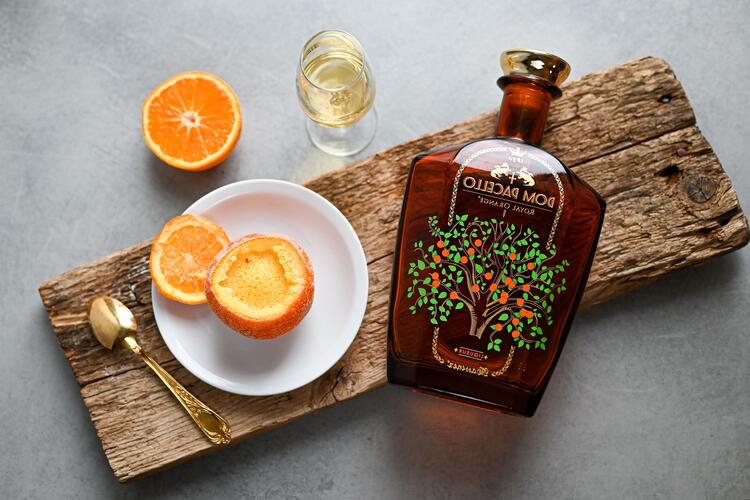 To finish, enjoy your frozen orange accompanied by a glass of orange liqueur.
