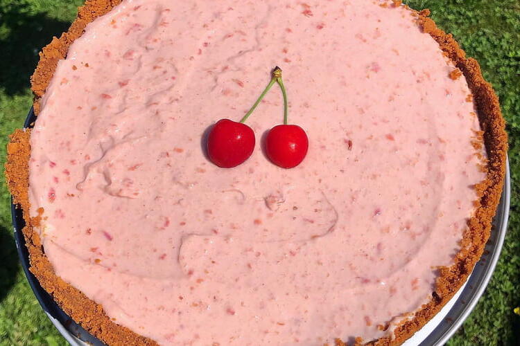 A delicious cheesecake with cherry sauce! Perfect for summer.