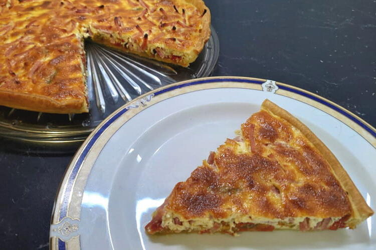 Today I propose a ham and bell pepper quiche. It is very easy and quick to prepare. Perfect for a dinner or a picnic, a buffet, etc. The bell peppers add a lot of flavor. You can also taste the cream well. For once, I didn't add any cheese :-. It was delicious.