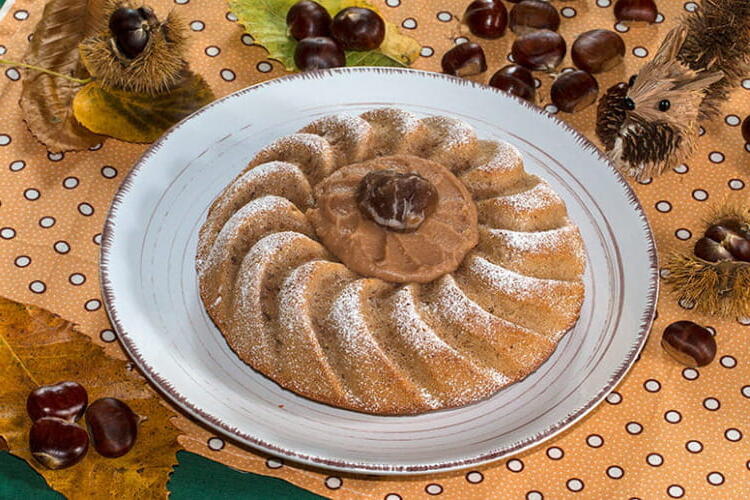 Let the cake cool before unmolding it onto a rack. Enjoy this cake served with a bit of homemade chestnut cream for me, but you can use store-bought.