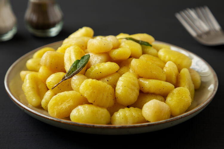 Flour a work surface and shape small balls of dough by hand. Roll the gnocchis on the back of a fork or make grooves with a knife to give the gnocchis ridges.