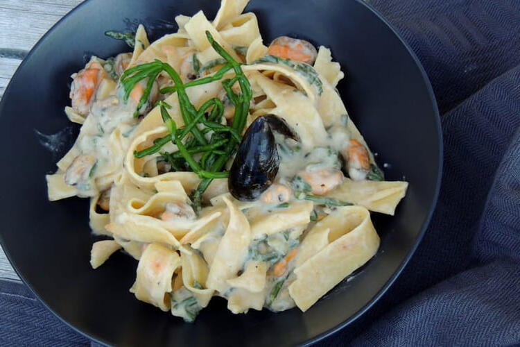 Homemade al dente pasta, served with tender mussels, crunchy samphire, and an anise-flavored fennel sauce. A light dish with a hint of freshness.
